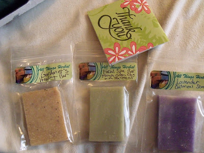 You must like All Things Herbal on Facebook and tell them I sent you! :) (Kristina from Be Your Own Beauty) Comment telling them what soaps you would like.